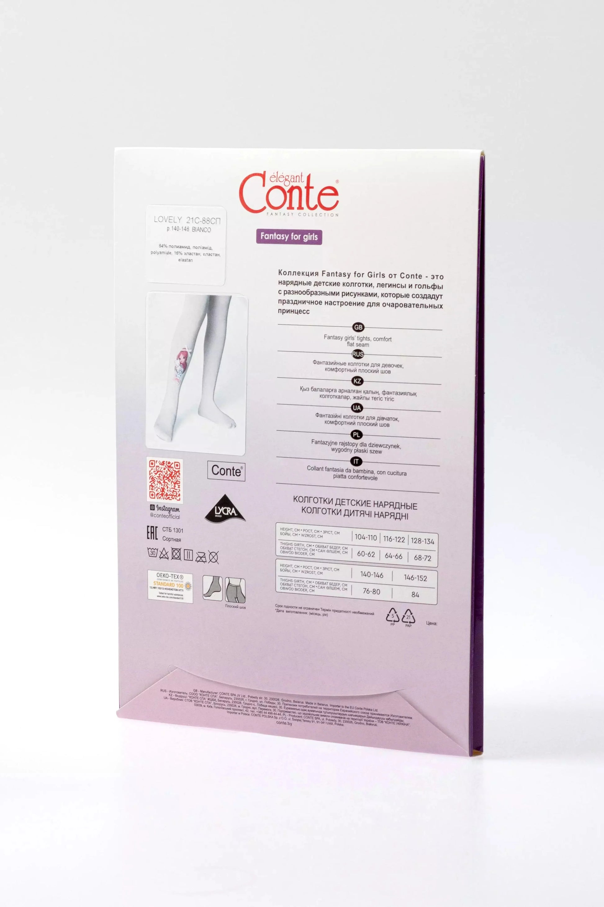 Dense elastic microfiber tights with a printed design and LOVELY decor add a playful touch to both everyday and festive looks. Designed especially for girls who love to look stylish and dressed up.