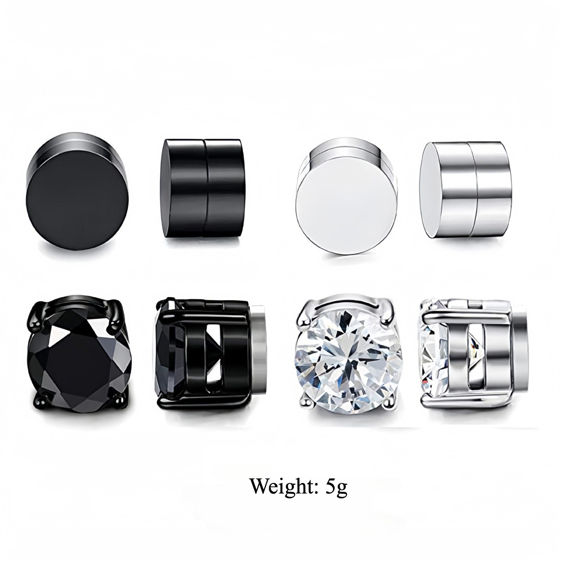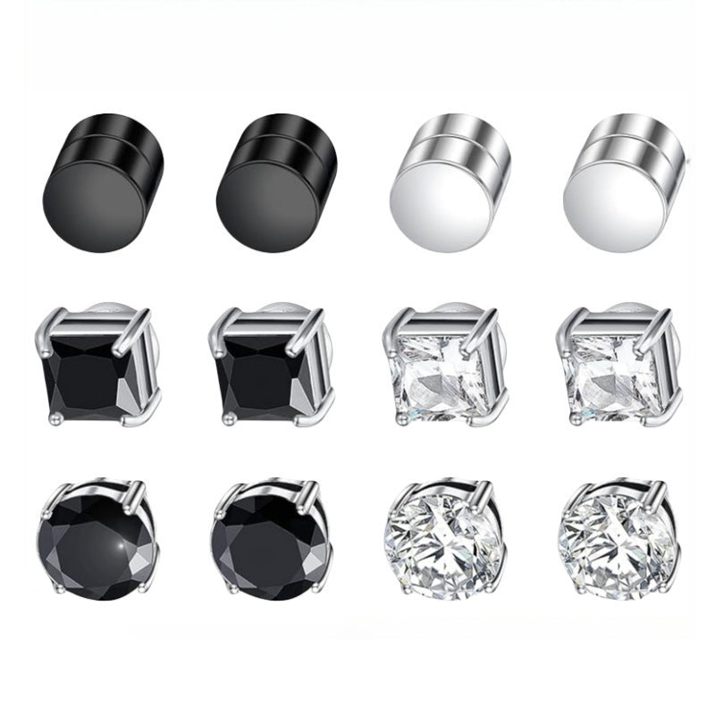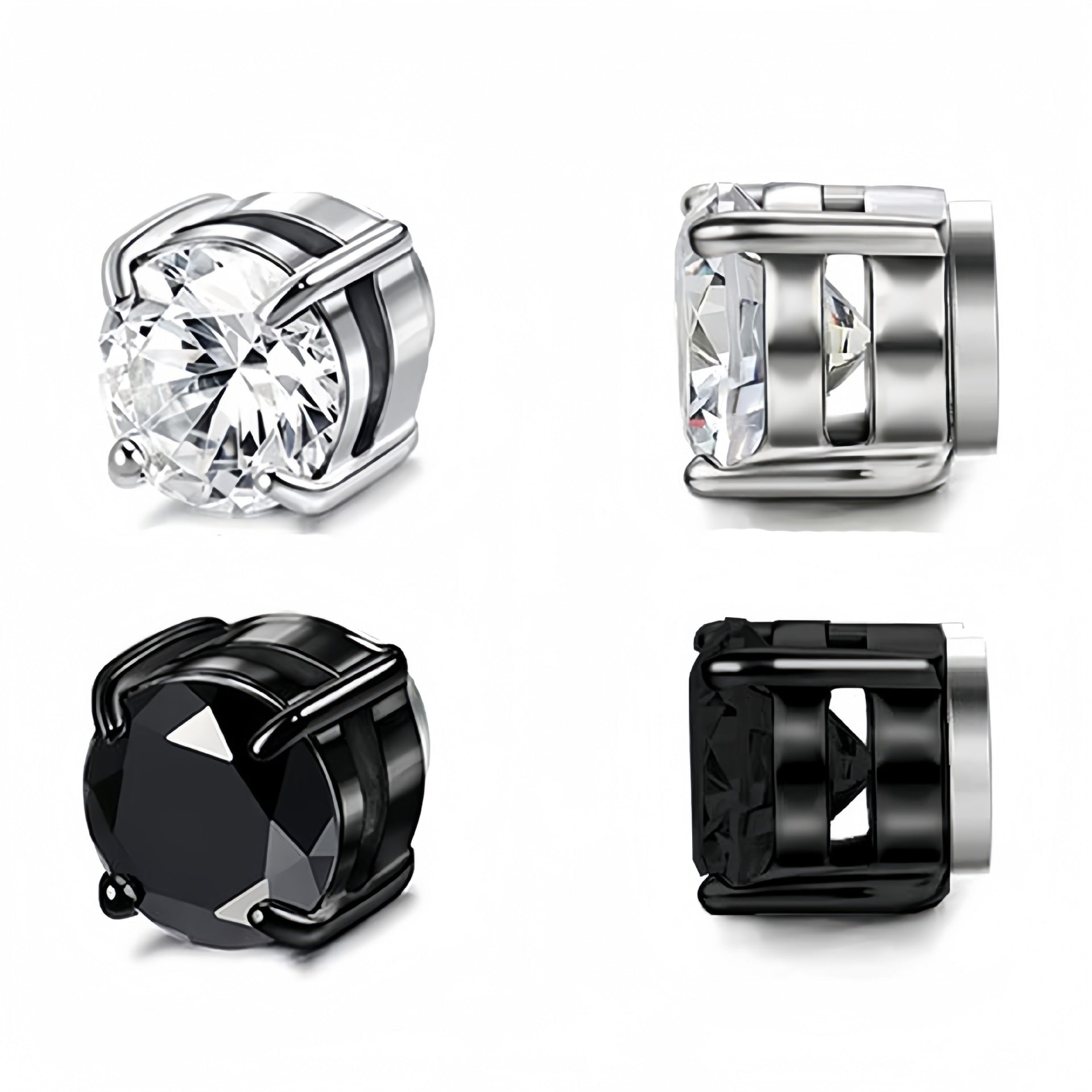 These stainless steel magnetic CZ stud earrings for men and women offer style, comfort, and convenience in one. Featuring 6mm cubic zirconia stones, they come in multiple pack options—3-pair, 4-pair, or 6-pair sets—with black and steel finishes. Perfect for anyone who loves the look of studs without having pierced ears.