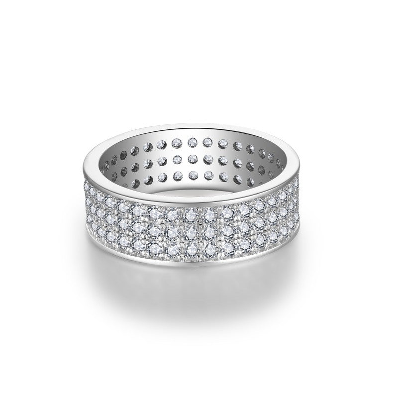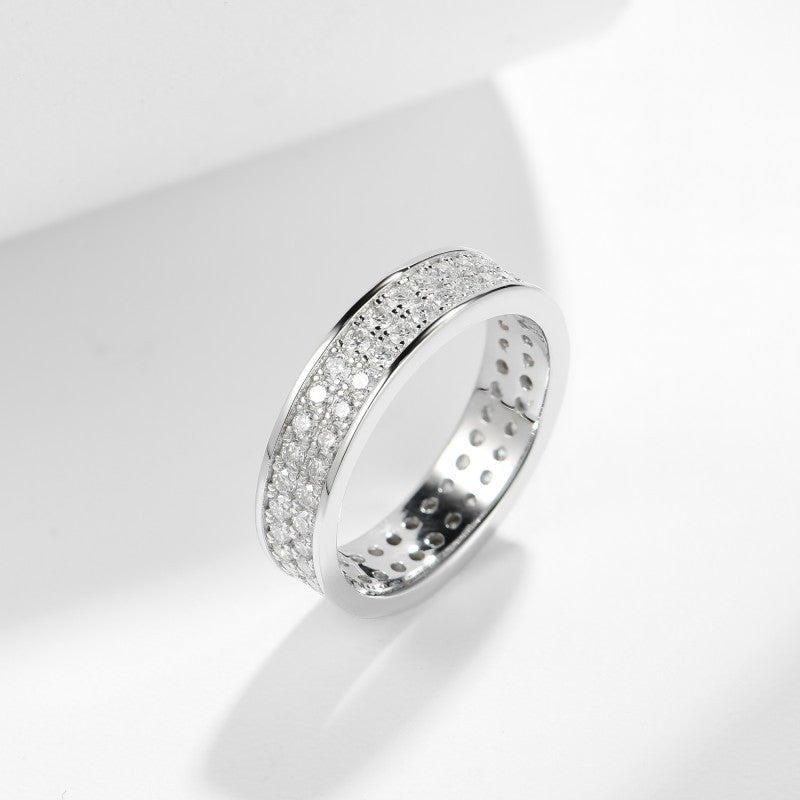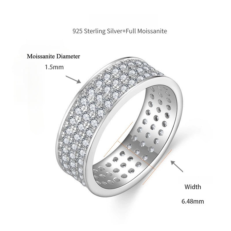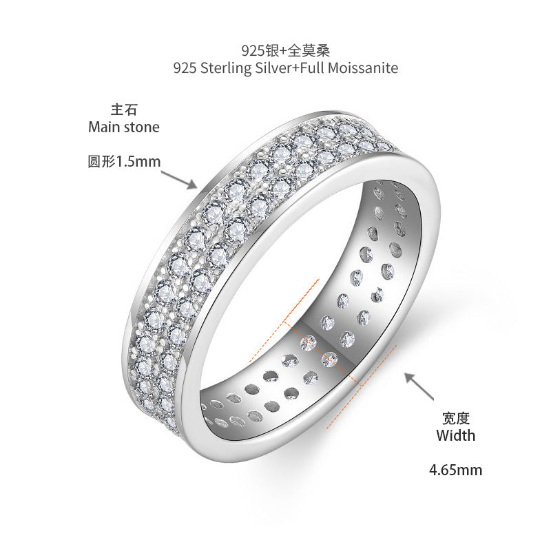 S925 Moissanite Matching Couple Eternity Bands Wedding Rings, Two-Row 1ct & Three-Row 1.8ct, D-Grade VVS, 18K White Gold Plated Unisex Rings