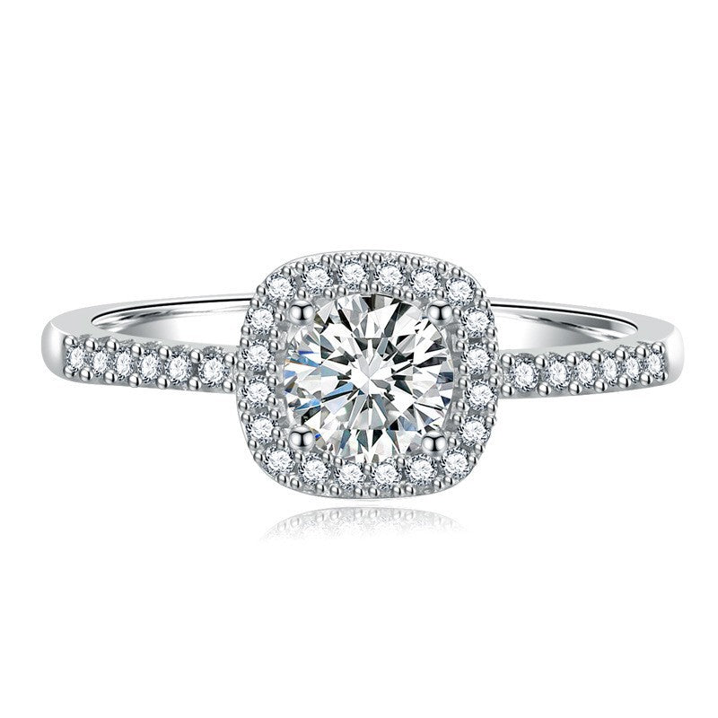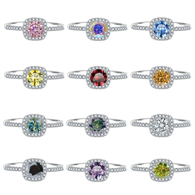 S925 Multicolor Moissanite Cushion Halo Adjustable Rings with Pavé-Set Band & Square Accents, 0.5ct-2ct D-Grade VVS Certificate, 12 Vibrant Colors, Sterling Silver Jewelry