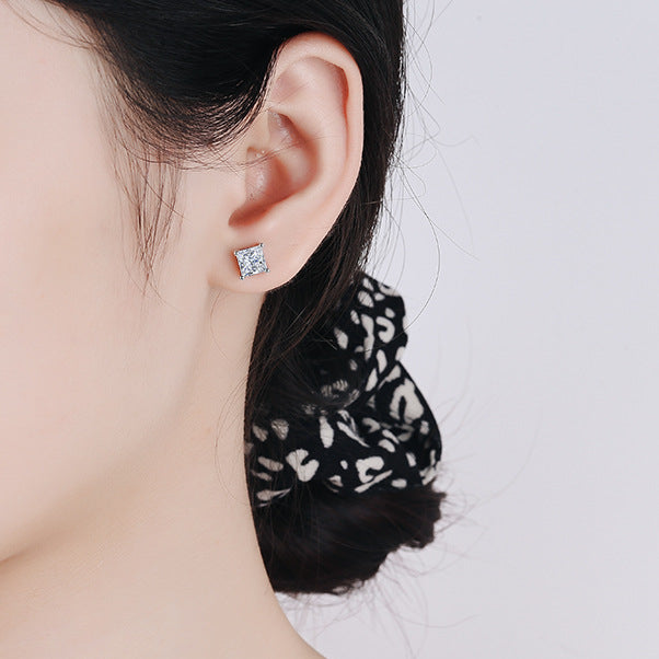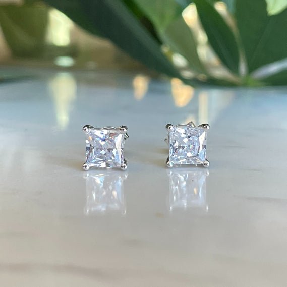S925 Square Princess Cut CZ or Moissanite Stud Earrings, 0.6-2ct Sterling Silver Hypoallergenic Zirconia Gift for Her Him