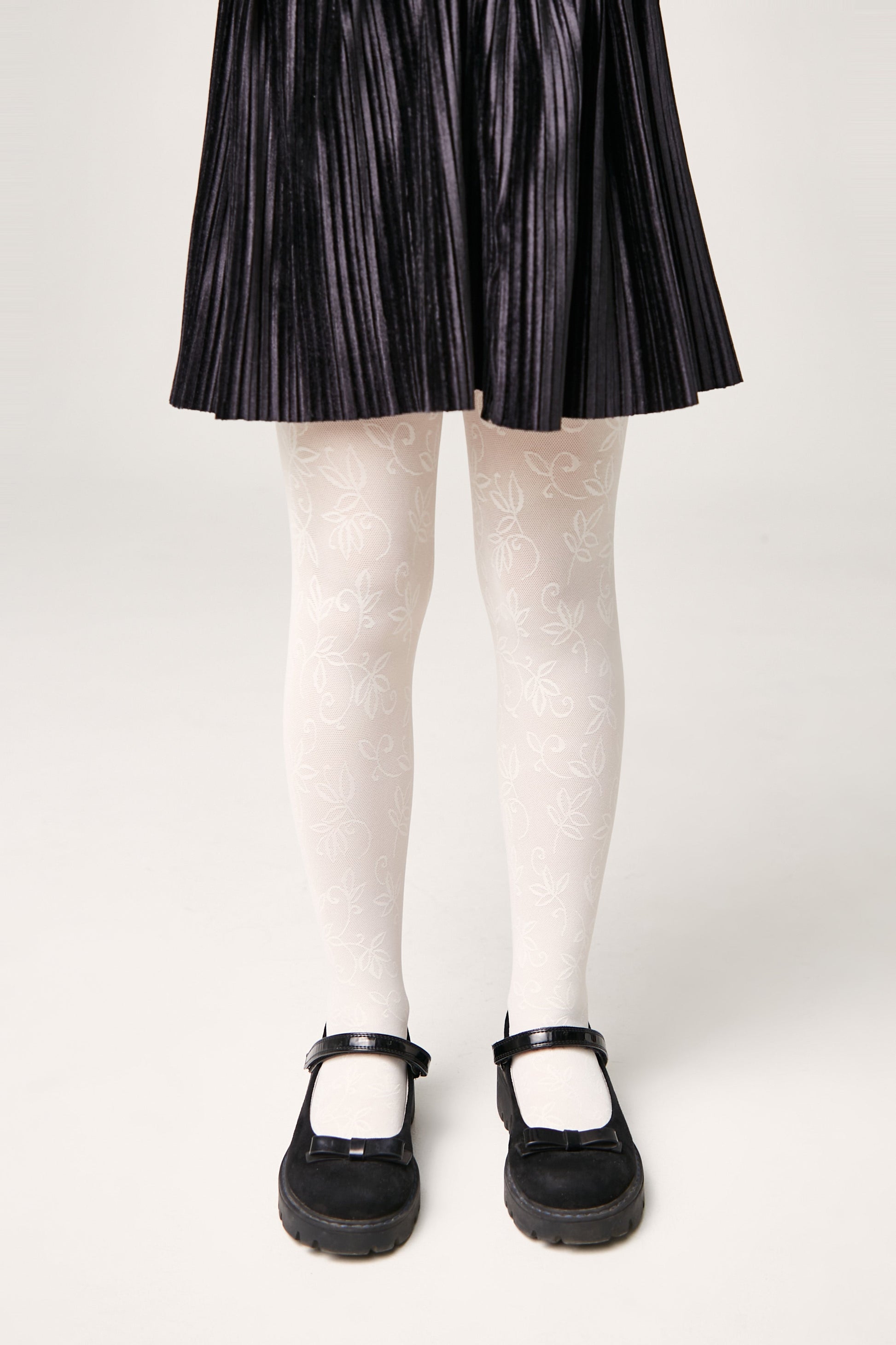 Elastic tights with a lace floral pattern KETTY are designed for young fashionistas who always want to look elegant and stylish. These tights will add a touch of charm to both everyday and festive outfits.