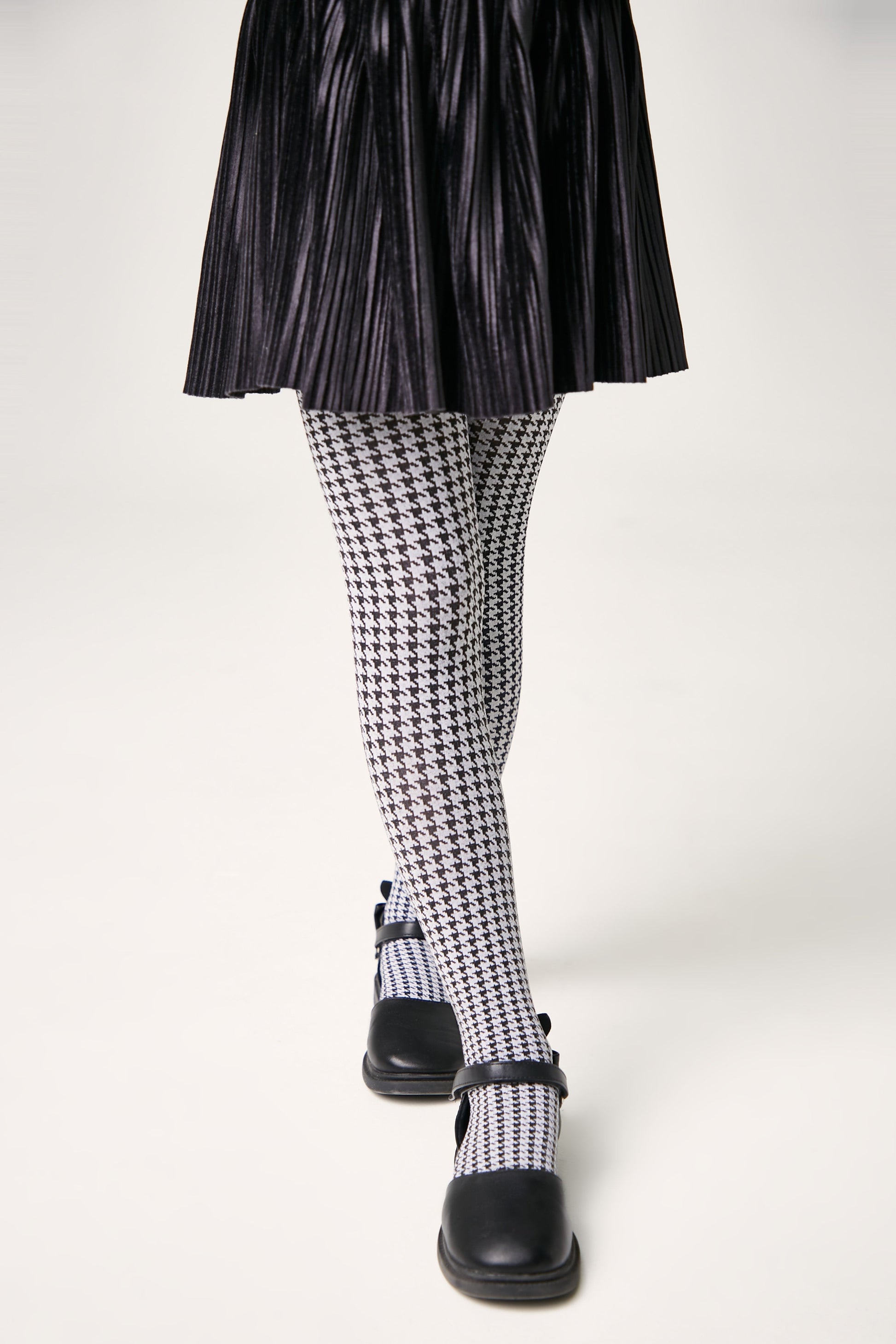 Thick elastic OLIVIA tights with a houndstooth pattern add charm to both everyday and festive outfits. Trendy design and perfect fit — great choice for girls.