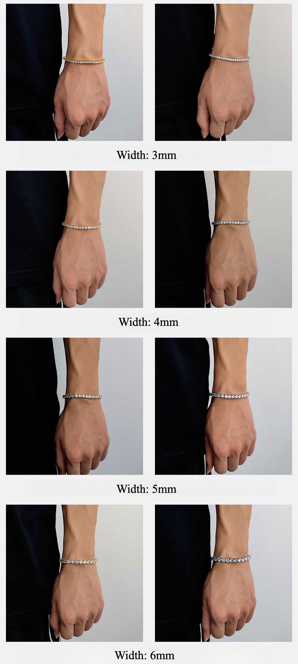 Hip Hop Iced Out Tennis Chain Bracelet, 18K Gold & White Gold Plated, 3–6mm CZ Iced Out Bling Jewelry