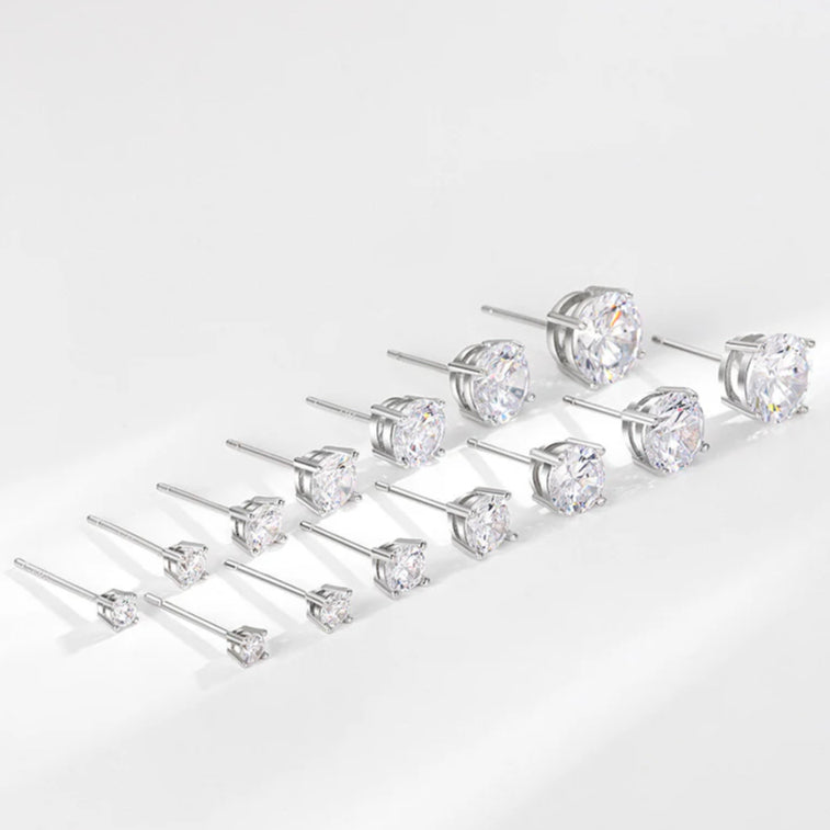 Elevate your everyday look with these timeless S925 sterling silver CZ stud earrings, designed for both men and women. Featuring high-quality round-cut cubic zirconia in a classic 4-prong setting, they come in 2mm to 8mm sizes and four stunning finishes—Silver, Gold, White Gold, and Rose Gold—to suit every style and mood.