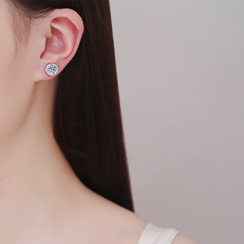 The S925 Magnetic Moissanite / CZ Round Halo Stud Earrings for Men Women blend luxury and ease with moissanite or high-carbon CZ (8A Zirconia), round cut center, and round halo design, plus a magnetic clip-on fit. The 1ct 6.5mm stone and S925 sterling silver ensure lasting brilliance and comfort for everyone.