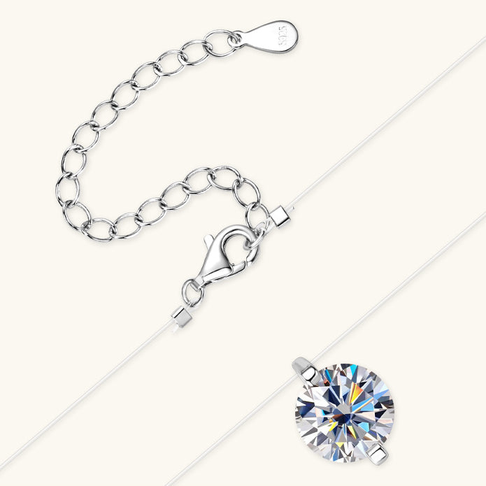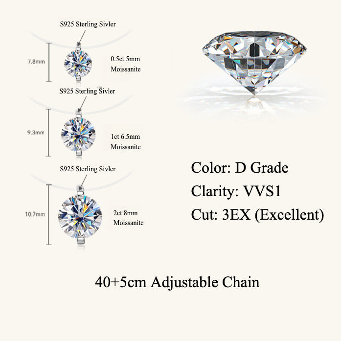 S925 Mermaid Tear Floating Moissanite Necklace, 0.5–3ct Sterling Silver Invisible Fishing Line Pendant, 40+5cm Adjustable Dainty Minimalist Choker