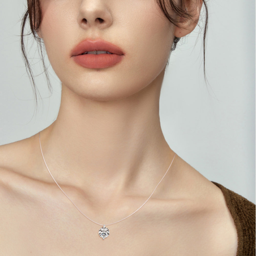Inspired by ocean legends, this Mermaid Tear Floating Moissanite Necklace brings graceful sparkle and minimalist charm to your look. Featuring a brilliant D Color VVS1 Moissanite (0.5–3ct) that appears to float effortlessly against your skin, it creates an enchanting, barely-there glow.