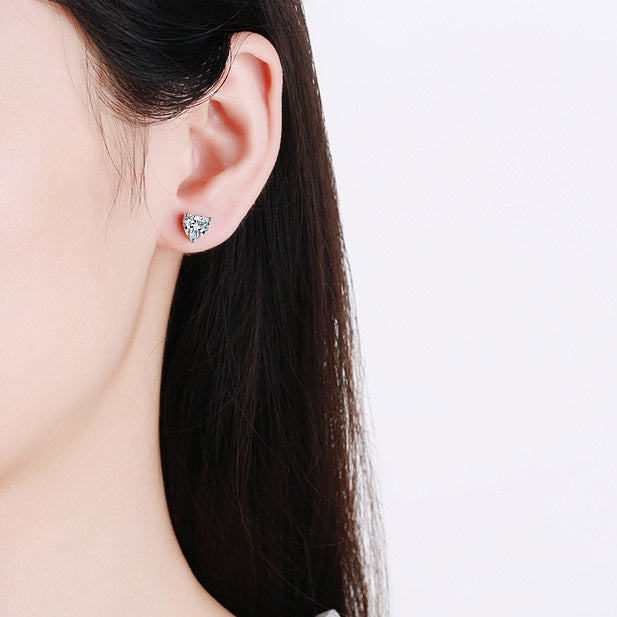 S925 Moissanite/CZ Heart Shape Stud Earrings, 1-2ct D-Grade VVS Certificate, Hypoallergenic Sterling Silver Gift