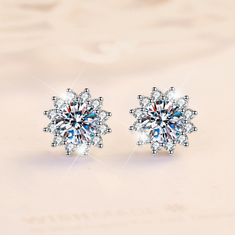 Featuring a unique sunflower halo design, these earrings combine luxury, versatility, and affordability. Choose Moissanite for timeless brilliance or CZ for budget-friendly sparkleâexpress your unique style with exceptional quality and shine brighter today!