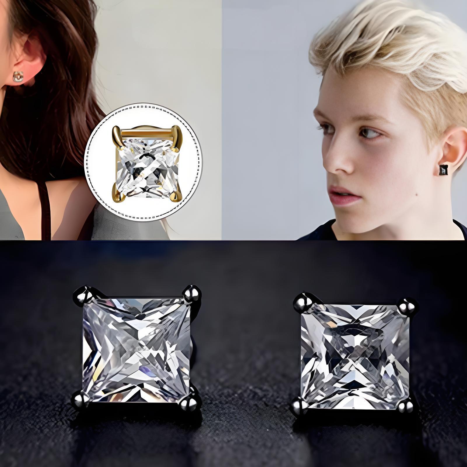 Looking for clip on earrings that are bold yet elegant? These non piercing princess cut studs are the perfect blend of modern design and easy wear. Each square CZ stud is set in durable steel stud earrings with a strong magnetic back—no piercing required. Choose from 6mm studs or larger 8mm earrings to suit your personal style. Designed for both men and women, they make standout mens clip ons or chic womens studs with effortless sparkle.